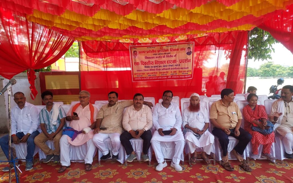 परिषदीय विद्यालयों के विलय के विरोध में आज गरजा प्राथमिक शिक्षक संघ।